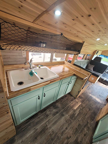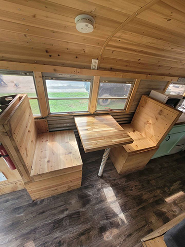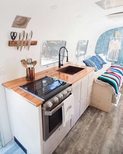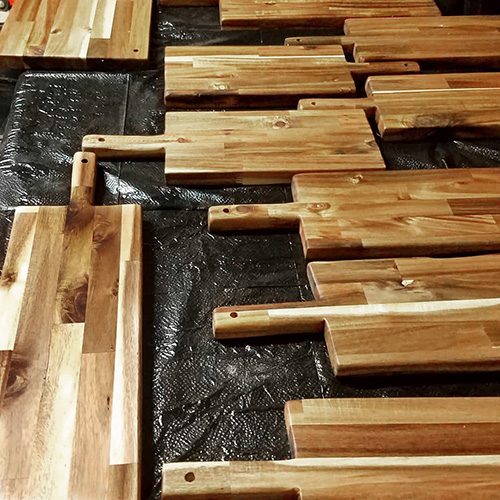 Some of the more unique uses, a customer in Columbia made a shuffleboard table out of butcher block, one of our Cincinnati customers had their countertop etched with a map of their beloved Lake Cumberland in Kentucky. Customers have converted school buses, airstreams, and camper vans into comfortable living spaces. Others have cut down their slabs of butcher block to make cutting boards. And what better way to use butcher block than for a charcuterie spread?